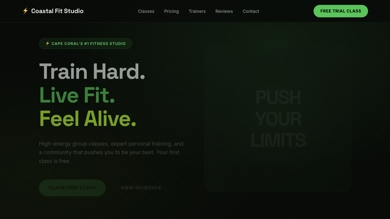 Class schedules, trainer profiles, membership tiers, and free trial signup