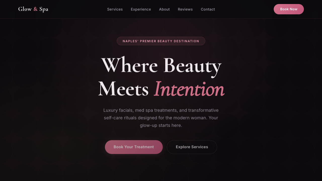 Treatment menu with pricing, online booking, and elegant brand experience